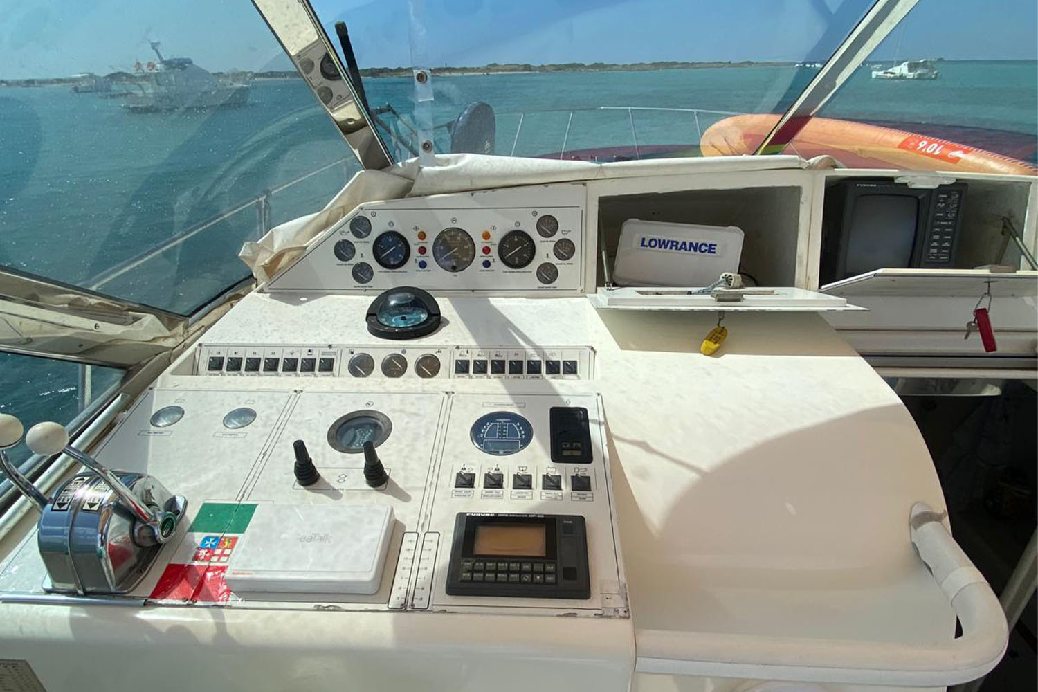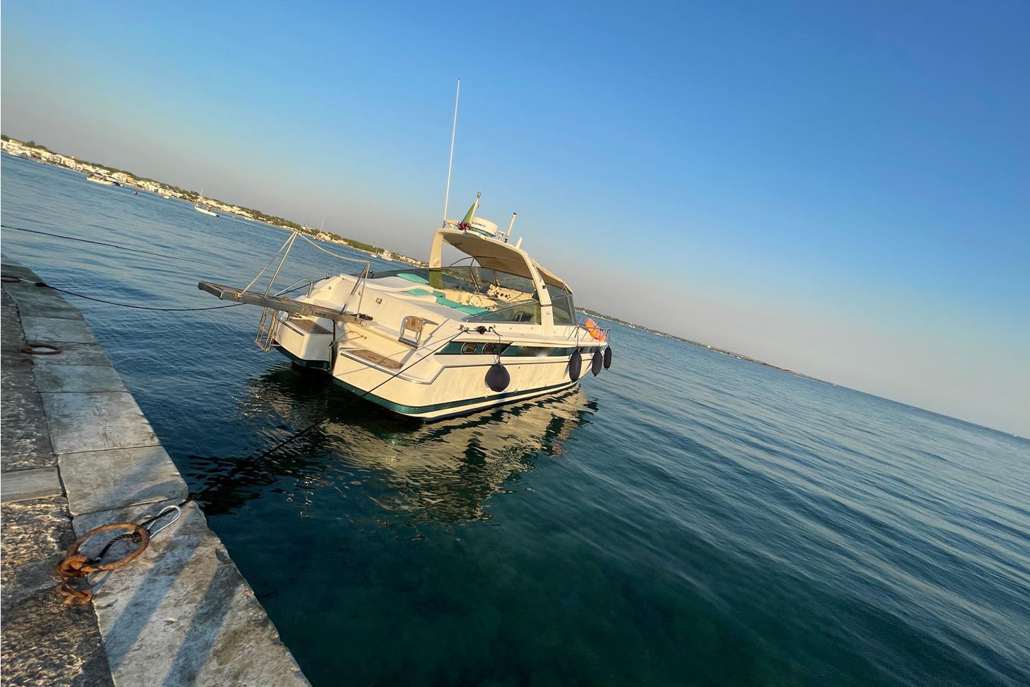 Storico Squalo 40′, modello varato dal Cantiere Nautico Squalo presente sul mercato e nella produzione tragli anni 70 e gli anni 80. La barca gode di buono stato interno ed esterno, i motori sono costantemente manutenzionati, tappezzeria e cuscineria esterne rinnovate 2024. Bassi consumi a 22kts(90 lt/h). Visibile in Puglia, disponibile in acqua per visita a bordo e prova. Cuscineria esterna rinnovata, tendalini con chiusura invernale di poppa realizzati 2024/2025, revisione turbine di entrambi i motori, revisione gruppo elettrogeno (Portato a ore 0). Passaggio allo STED eseguito, scadenza certificazione 2028.